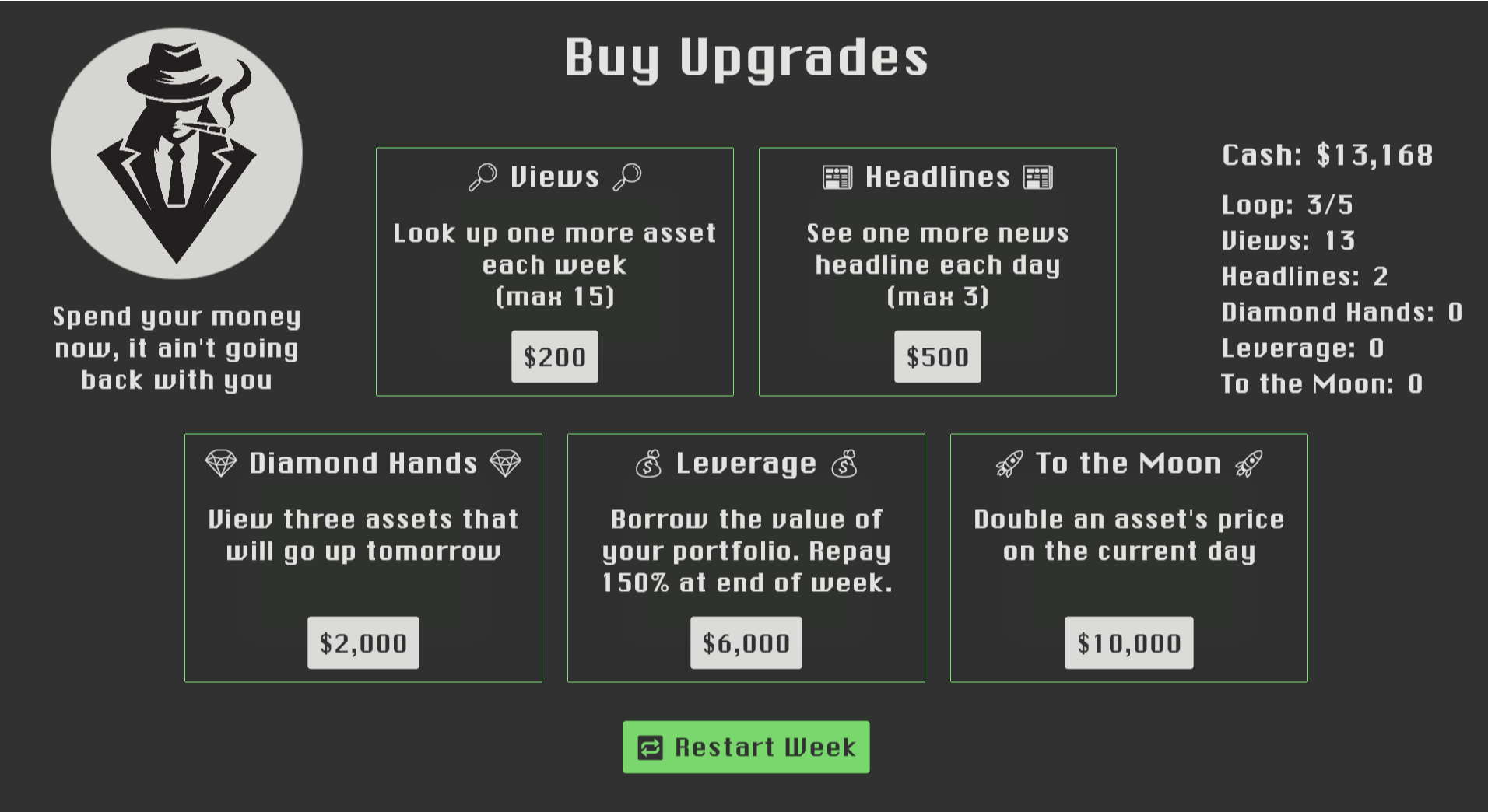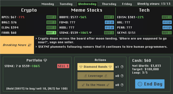 But you're in a week-long time loop, and you've seen it all before. Turn a modest sum into a fortune as you get ever-more-perfect at timing the market.